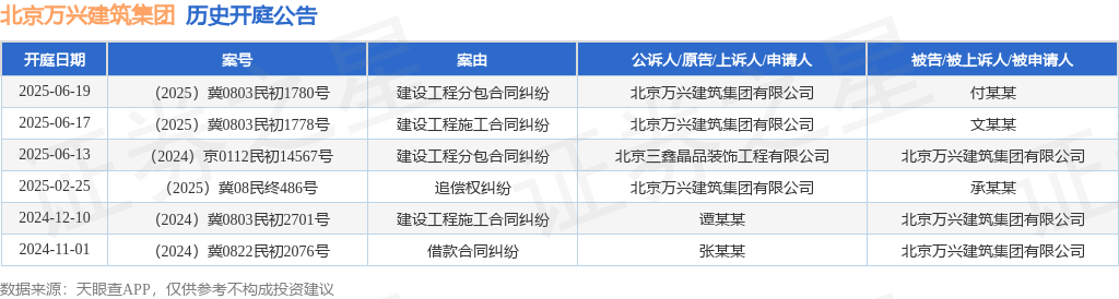 本站消息,根据天眼查APP显示,近日公布了一则北京万兴建筑集团有限公司作为原告/上诉人的开庭公告,详细内容如下:
